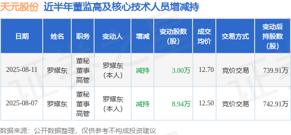 天元股份近半年内的董监高及中枢手艺东说念主员增减执服气如下: