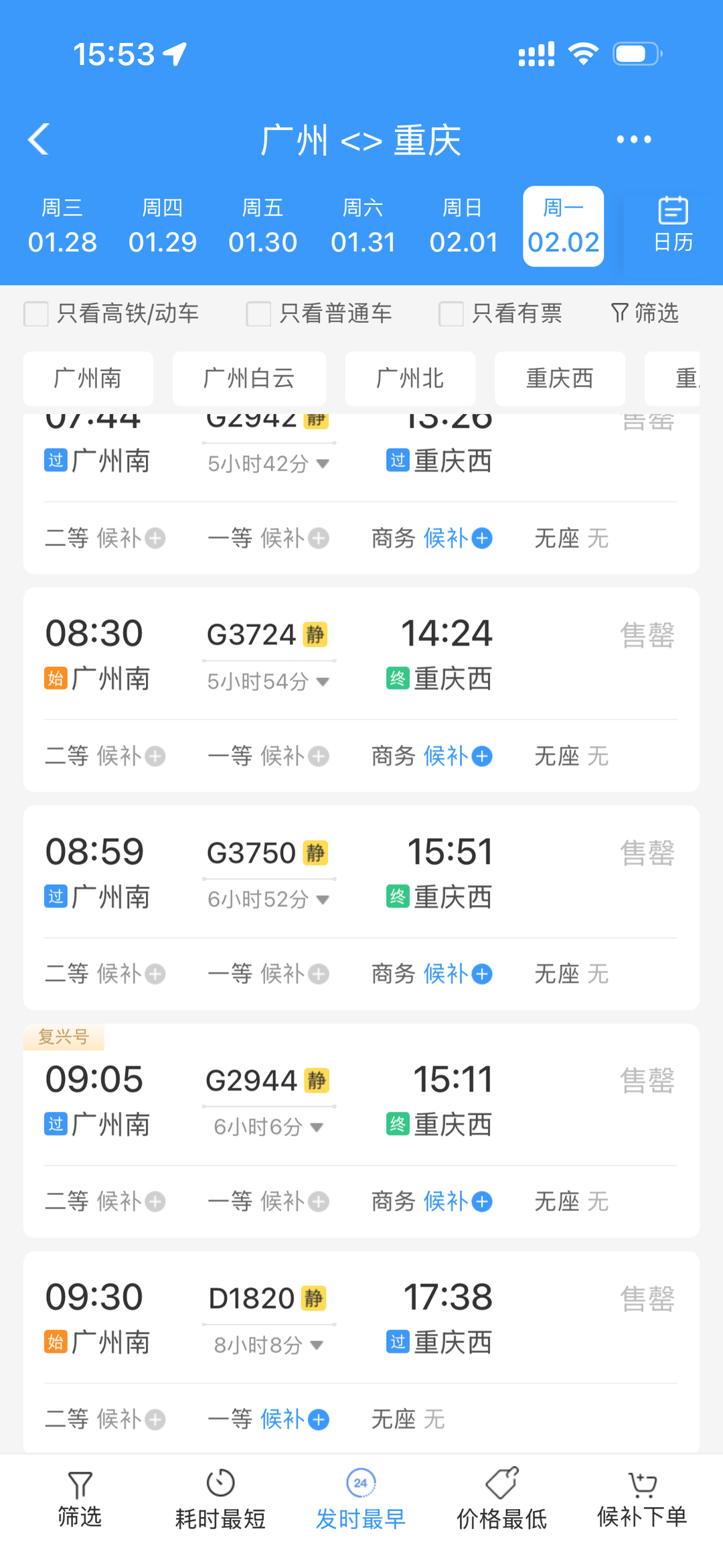广州到重庆显现照旧售罄