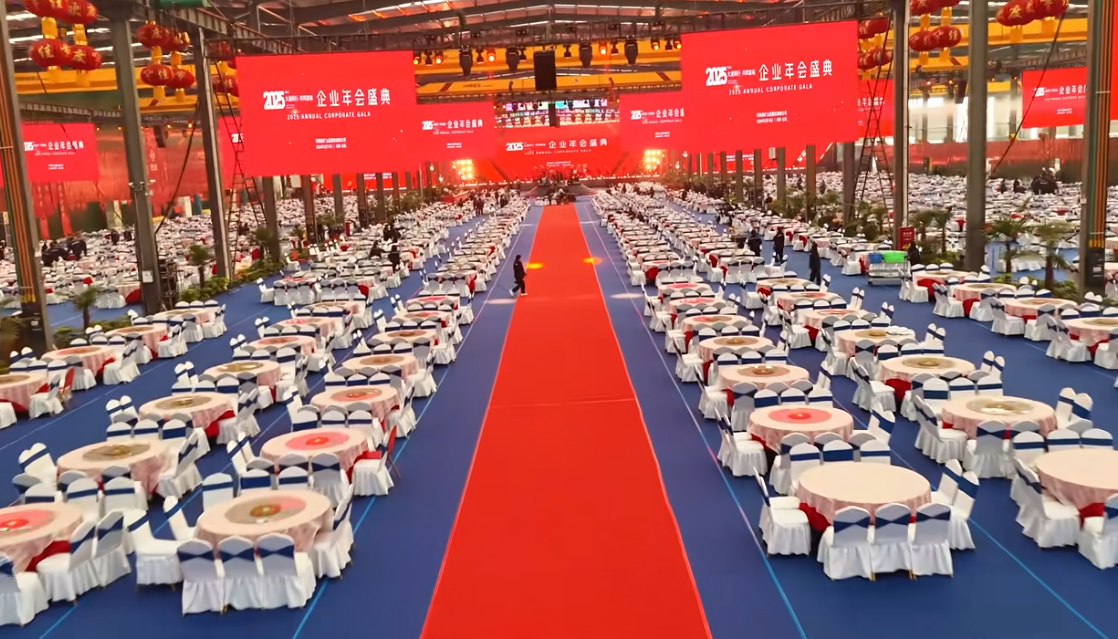 该宣传部认真东说念主还提到,2025年度年会共有7000余名职工及家属插足,公司安排近800桌宴席,屠洪刚等歌手会登台献唱,年会现场还成立了数钱比赛、现款抽奖等设施。