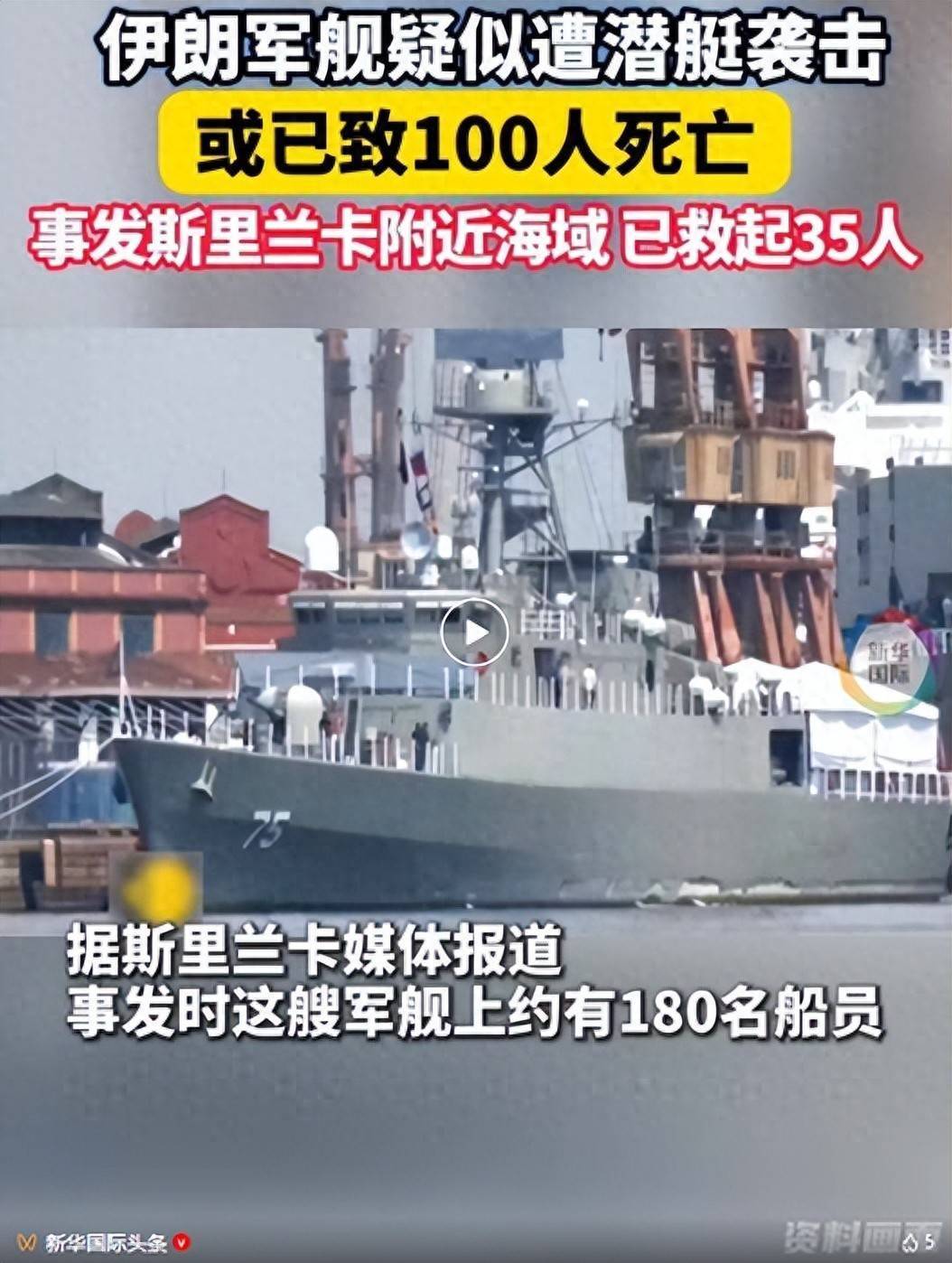 伊朗战舰在斯里兰卡以南海域疑遭潜艇热切 或已致100东说念主死字