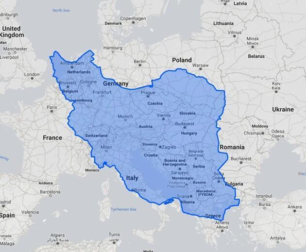 最初是令东说念主规避而视的体量。伊朗的东说念主口逾越9000万,是其邻国伊拉克的两倍多。从地舆上看,伊朗的版图面积约为165万泛泛公里,险些额外于小半个欧洲大陆的大小,也与好意思国阿拉斯加州的面积额外。要是将伊朗相通在好意思国舆图上,它将笼罩好意思国脉土近三分之一的区域;要是与其相近的德克萨斯州比较,伊朗也显得雄伟无比。